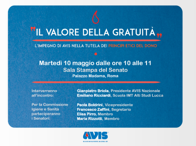 "Il valore della gratuità" La conferenza in Senato di AVIS Nazionale